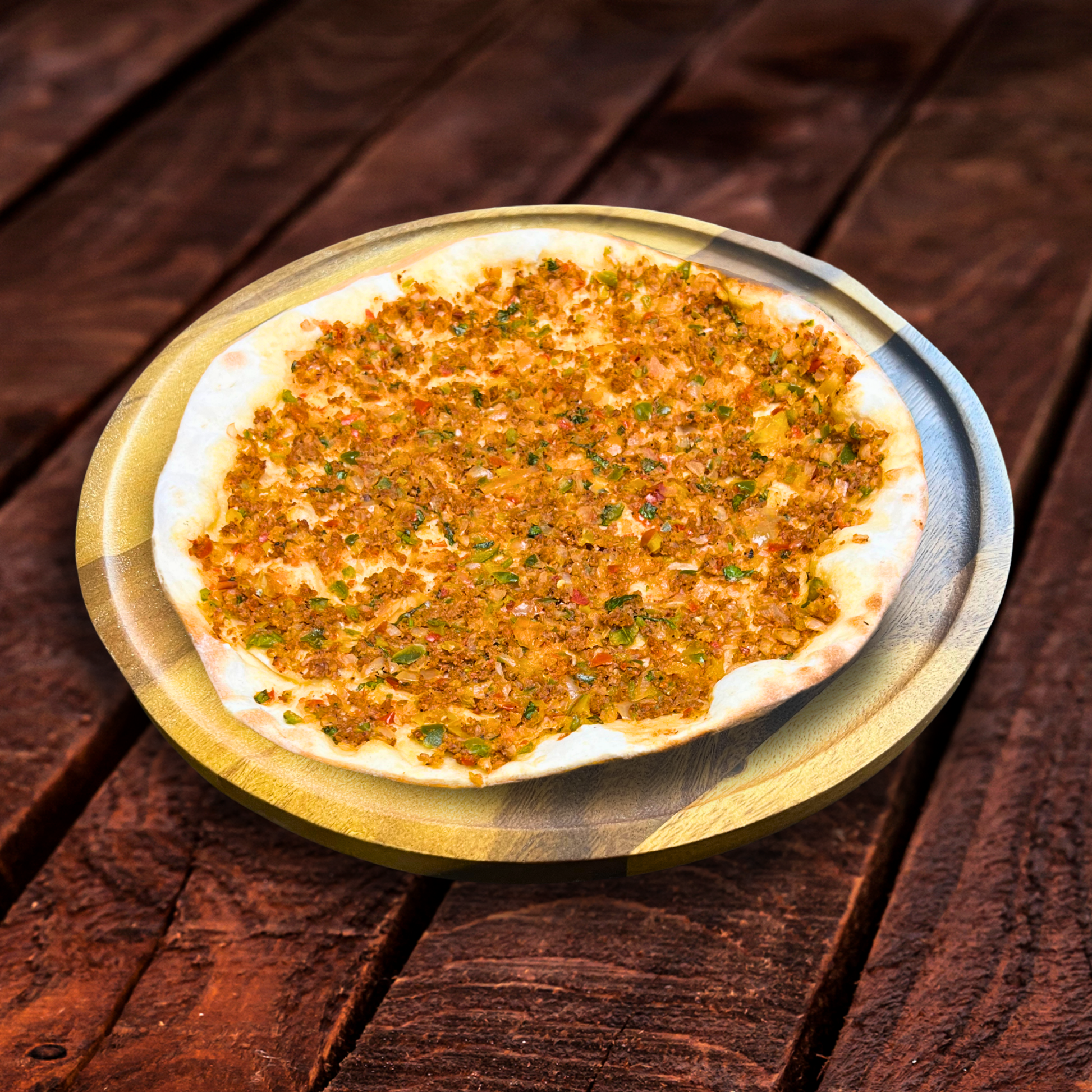 A Mediterranean delight with seasoned minced meat on thin dough, perfect for a flavorful snack or meal.