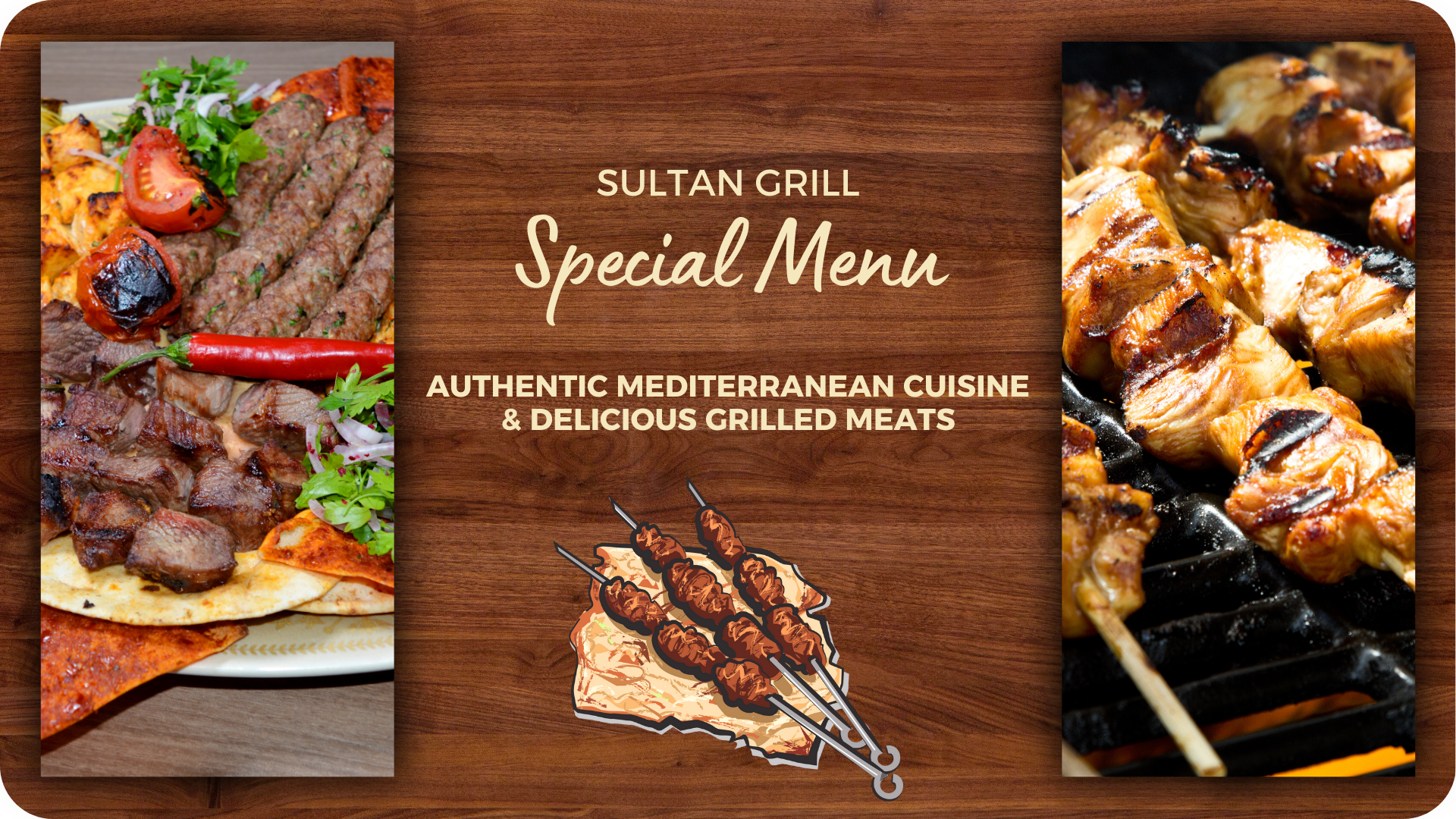 We specialize in Mediterranean cuisine, offering a variety of dishes such as kebab, kunafeh, baklava, shish taouk, BBQ grill items, and chicken. Our menu is designed to bring you the authentic flavors of the Mediterranean